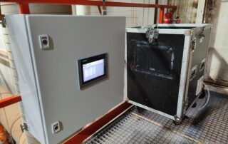 We zetten deze meetopstelling in om koolwaterstoffen te detecteren. Door de koolwaterstoffen te ioniseren met een vlam, wordt de VOC-uitstoot gemonitord.